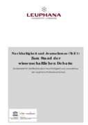 "Nachhaltigkeit hat Hochkonjunktur – und doch ist das dahinter stehende Konzept längst nicht allen bekannt. In diesem Zusammenhang ist es von Interesse, wie (ausgewählte) Medien das Nachhaltigkeitsleitbild kommunizieren, zur Aufklärung beitragen und Verhaltensänderungen von Konsumenten unterst