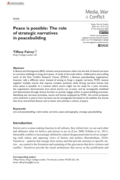 lls a different story. Instead of aiming to forge a singular narrative, PCRC weaves together multiple stories that express complex positions while driving narrative frames that show peace is possible. In a context where actors might not be ready for a joint narrative, the organization demonstrates how plural stories can co-exist, and be strategically mobilized and disseminated through diverse formats to actively engage others in peace-building processes. Identifying key narrative principles, tactics and frames employed by PCRC, this article proposes more attention is paid to how narrative can be strategically harnessed to de-stabilize the stories that drive entrenched division and to foster and cultivate a culture of peace." (Abstract)