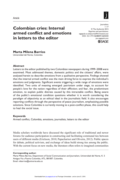 "Letters to the editor published by two Colombian newspapers during 1999–2008 were examined. Most addressed themes, domestic politics and the citizens’ affairs, were analyzed herein to describe emotions from a qualitative perspective. Findings showed that the internal armed conflict was the main