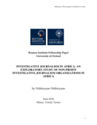 on behind the formation of three not-for-profit investigative organizations, their funding model, as well as their impact in their respective countries. The following organizations are being studied: South Africa’s Amabhungane Centre for Investigative Journalism; Nigeria’s Premium Times Centre for Investigative Journalism; and Botswana’s INK Centre for Investigative Journalism. This study also argues that although these organizations are playing a crucial role in keeping power in check, their overreliance on donor organizations may spell doom for some of them." (Abstract)