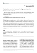 they fund? Using the hierarchy of influence model, this study utilizes more than 40 interviews with journalists at digitally native nonprofit news organizations and employees from foundations that fund nonprofit journalism to better understand the impact of foundation funding on journalistic practice. Drawing on previous scholarship exploring extra-media influence on the news industry, we argue that the impact of foundations on journalism parallels that of advertisers throughout the 20th century—with one important distinction: Journalism practitioners and researchers have long forbidden the influence from advertisers on editorial decisions, seeing the blurring of the two as inherently unethical. Outside funding from foundations, on the other hand, is often premised on editorial influence, complicating efforts by journalists to maintain the firewall between news revenue and production." (Abstract)