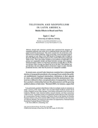 "Several Latin American countries have experienced the emergence of neopopulist politicians who eschew ties to traditional parties and orient their campaigns toward the atomized poor. This article examines the role of television in the electoral success of these politicians. Using survey data, I ass