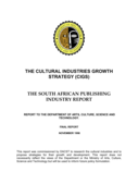 f cultural activities, most of which have commercial objectives as their prime motivating force, with activities taking a number of different forms, from the manufacture or creation of products to the marketing and distribution thereof. The cultural industries on which the report concentrated are the music industry, the craft industry, the publishing industry and the film and television industries. The methodology followed for the study is in the nature of an industry strategy analysis. Each sector report is principally an economic analysis, providing baseline data for each of the four sectors, and focusing on the economic and social contribution of each sector; the impediments to growth, and the opportunities for employment creation and competitive development. Each sector report concludes with strategic policy recommendations for interventions by both the public and private sector. The book publishing industry is covered in sector 4, electronic publishing in sector 5, and other sectors are devoted to an overall evaluation of the four segments of the industry, a SWOT analysis, and a final section devoted to an analysis of global trends in the publishing industry." (Hans M. Zell, Publishing, Books & Reading in Sub-Saharan Africa, 3d ed. 2008, nr. 1090)