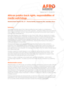 government interference. Africans also support an active “watchdog” role for the press: On average, 69% believe that the media should exercise this role. Similarly, a majority (64%) believe the media is effective in exposing government mistakes and corruption. More than one-third (36%) of respondents say the media “often” or “always” publishes things it knows are not true. In some countries, this perception is shared by large majorities of citizens." (Key findings, page 2)