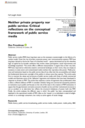 s logic of capital but by broader ambitions that involve citizen participation, social improvement andknowledge acquisition. This article offers a different interpretation. It argues that at their very best, PSM have improved an otherwise anaemic commercial landscape; at their worst, they are simply an accessory to state actors and contaminated media markets that reproduce elite power. Media practices and institutions based on the public service idea all too often lack the accountability and indeed the fundamental democratic oversight of the publics in whose name they operate. This article seeks first to contrast the values and structures of public service media with those of wholly commercial models and illustrates some of the ‘defensive’ arguments and initiatives that have been developed in response to threats to PSM. The article then explores a series of arguments that problematise what is often a reflexive defence of PSM. It considers whether being non-commercial necessarily positions an institution as pro-public and focuses on the role of the state in the creation of PSM institutions. It argues that the gap between normative accounts of public service and their institutional structures is not an accident or an aberration but reflects the structural imbalances of power built into PSM. Finally, the article analyses the different ways in which ‘the public’ has been conceptualised and deployed in the operational models of PSM, often as the ‘masses’ or as individuals in need of enlightenment or as sovereign consumers, but rarely as active agents of social change." (Abstract)