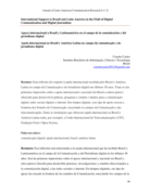 as, pesquisas e estudos voltados para a comunicação digital, redes sociais digitais e internet. Em tempos digitais, esse tipo de apoio cruzou a fronteira dos Estudos de Comunicação, mesclando os campos da Comunicação e das telecomunicações. Entre as instituições que oferecem ajuda internacional ao Brasil e América Latina estão, por exemplo, a União Internacional de Telecomunicações (UIT), Fundação Ford e Open Society." (Resumo)