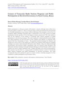 "The study has concluded that there exists a positive relationship between vernacular radio programming content and participation of community in issues of governance. Therefore, it is recommended that vernacular radio stations should give more attention to the content of these programs. Priority sh