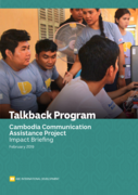 "Talkback radio programs (TBP) were established to educate the Cambodian public on governance issues and provide a channel through which they could communicate with authorities directly. Programs were broadcast in 4 provinces: Battambang, Kampong Cham, Siem Reap, and Kampot. This impact briefing rev