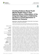 care for depression, soon to be the largest single contributor to the global burden of disease. We here describe an innovative approach that addresses these issues simultaneously while concurrently strengthening key mental health components in existing education and health-care systems as successfully applied in Malawi and replicated in Tanzania. Improving the pathway to care for young people with depression requires the following: improving mental health literacy (MHL) of communities, youth, and teachers; enhancing case identification and linking schools to community health clinics; improving the capacity of community health-care providers to identify, diagnose, and effectively treat depression in youth. Funded by Grand Challenges Canada, we developed and applied a program called “An Integrated Approach to Addressing the Challenge of Depression Among the Youth in Malawi and Tanzania” (IACD). This was an example of, a horizontally integrated pathway to care model designed to be applied in low-resource settings. The model is designed to 1) improve awareness/knowledge of mental health and mental disorders (especially depression) in communities; 2) enhance mental health literacy among youth and teachers within schools; 3) enhance capacity for teachers to identify students with possible depression; 4) create linkages between schools and community health clinics for improved access to mental health care for youth identified with possible depression; and 5) enhance the capacity of community-based health-care providers to identify, diagnose, and effectively treat youth with depression. With the use of interactive, youth-informed weekly radio programs, mental health curriculum training for teachers and peer educators in secondary schools, and a clinical competency training program for community-based health workers, the innovation created a “hub and spoke” model for improving mental health care for young people. Positive results obtained in Malawi and replicated in Tanzania suggest that this approach may provide an effective and potentially sustainable framework for enhancing youth mental health care, thus providing a policy ready framework that can be considered for application in sub-Saharan Africa." (Abstract)