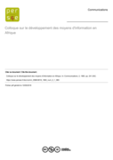 onseil Economique et Social, sur les problèmes que pose l'octroi d'une assistance technique pour le développement des moyens d'information — Son rapport adopté à l'unanimité, contient des multiples suggestions quant aux mesures que pourraient prendre les gouvernements, les organismes internationaux et les associations professionnelles en vue de faciliter le développement de la presse, de la radio, du cinéma et, enfin, de la télévision en Afrique — On y trouve également des indications sur les moyens d'utiliser les organes d'informations en Afrique de façon à élever le niveau d'instruction et à favoriser le progrès économique et social." (Jean-Marie Van Bol, Abdelfattah Fakhfakh: The use of mass media in the developing countries. Brussels: CIDESA, 1971 Nr. 631, topic code 070)