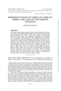 "This article examines representation of the conflict in Darfur by the media in Kenya, South Africa, Egypt and Rwanda. It analyses 850 newspaper articles published from 2003 to 2008 and journalist interviews from Kenya and South Africa. Using Mbembe’s articulation of ‘meaningful acts’ and Bour