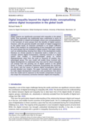 olders. While research has recognized digital inequality and its dimensions, it has not explicated its broader impact thoroughly, particularly in the current era of digital transformation. The information communication technology (ICT) domain has evolved significantly because of its strong interrelationship with many other sectors, encompassing critical issues such as ethics, inequality, leadership, social capital, governance, and management. There is still a considerable gap in understanding the complexities around digital inequality, which varies across different contexts. Reflecting on over 15 years of experience in information communication technology for development (ICT4D) as both a practitioner and researcher, the evolution of DI in terms of social transformation and its growing short- and long-term implications are discussed. Strategies and pathways for the future are presented, grouped into six areas: a call for a renewed philosophical shift and campaign for digital equality, policy interventions, inclusive technology solutions and services, holistic human capacity building, the universities' role, and the need for a multi-disciplinary approach to address DI." (Abstract)