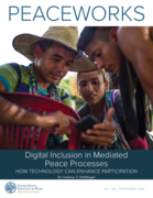eport explores the current and future practice of digital inclusion, giving a framework for understanding the possibilities and risks, and providing examples of practical ways digital technologies can contribute to mediated peace processes." (www.usip.org)