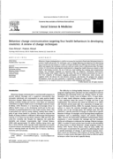 need to define and organize the techniques previously used and connect them to effectiveness data. This paper reviews 24 interventions and programs implemented to change four health behaviours related to child health in developing countries: the use of bed nets, hand washing, face washing and complementary feeding. The techniques employed are organized under six categories: information, performance, problem solving, social support, materials, and media. The most successful interventions use three or even four categories of techniques, engaging participants at the behavioural, social, sensory, and cognitive levels. We discuss the link between techniques and theories. We propose that program development would be more systematic if researchers considered a menu of technique categories appropriate for the targeted behaviour and audience when designing their studies." (Abstract)