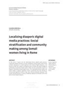"In this article, I inquire into the relationship between digital media practices, community making and forms of social stratification among Somali women living in Rome. Drawing on a critical approach to the study of 'digital diaspora', I use theories of 'field' and 'capitals' as analytical tools to