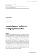 "This editorial introduces the theoretical framework, methodological approach and comparative themes of the Special Issue on 'Somali Diaspora and Digital Practices: Gender, Media and Belonging'. The Special Issue proposes to connect the notion of the Somali diaspora to recent advancements in communi