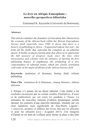 s qui représentent le continent comme un désert éditorial. Il s'appuie sur de nombreuses données existantes qui nous permettent d'apprécier toute la mesure des progrès accomplis depuis l'époque où missionnaires et érudits ont pris l'initiative d'ouvrir les premières maisons d'édition. Il met l'accent sur l'éveil d'une nouvelle conscience des questions éditoriales, qui sont étroitement liées à certains des problèmes majeurs du champ littéraire africain." (Résumé)