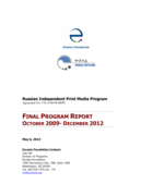 "Initially launched in 2004 by Eurasia-Media, the Russian Independent Print Media Program (RIPMP) provides intensive training and assistance to promising independent local Russian newspapers, under the premise that by nurturing select publications into ‘beacons of excellence’, best practices eff