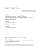 t highly favourable for news or entertainment providers. From a major study conducted on mobile phone based internet behaviours in Ghana, Kenya and Uganda in 2015, we find consumption in these countries reflects the trends observed in more mature markets where the decline in news purchase revenues and advertising rates raises fundamental questions about the business models of independent media. While users enjoy the personalized content benefits of the mobile web, they feel that paying for data (i.e. Mobile connection and data bytes) is sufficient and conflate it with paying for content (i.e. Content in an online newspaper or online music). We argue that deconstructing misunderstandings of paying for mobile internet access and paying for content (including ascertaining whether they are genuine misunderstandings) is important for understanding how to achieve a free and fair internet, where content is accessible but generates enough profit to be sustainable." (Abstract)