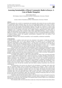 en in existence for more than ten years but still struggling with sustainability challenges. The study was conducted in a natural setting which involved in-depth interviews and Focused Group Discussions (FGD’s). Data was collected and analyzed. The study revealed lack of quality management, lack of community involvement, lack of quality programs, unprofessionalism among others as contributing factors towards Rural Community Radio (RCR) sustainability. Qualitative research focusing on insight and understanding from the perspective of those being studied offers the greatest promise of making a difference in people’s lives (Merriam 2009). Based on findings, the study recommends that RCR should improve on financial resources, policies and regulation, professionalism, management skills, and training of staff /volunteers should be frequent." (Abstract)