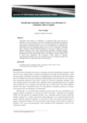 ant interviews from major communication stakeholders, including Uganda’s Minister of Information and Communication Technology, the article presents findings indicating that CATs are self-sustaining, with no NGO influence, and they redefine news to mean local emergencies and occurrences, while having no structures (horizontal/vertical rhetoric) as they are started and run by one community member. The challenges of the new alternative media are also discussed." (Abstract)