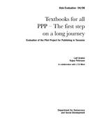 start. The New Textbook Policy (of 1991) abolished the state monopoly in textbook production, and a new curriculum for primary school was ready to be launched. Accordingly, there was a need for new textbooks in all subjects. In addition, the former single-textbook system was to be replaced by a multitextbook system, with free choice of textbooks in school (in accordance with the New Textbook Policy). The Pilot Project for Publishing (PPP), 1993-2000, was started as an instrument for implementing the new policy and helping to strengthen the textbook sub-sector. The main aim was to smooth the transition from monopoly to market system in the textbook sector. Thus, the task of the PPP was to transfer responsibility for textbook publishing and distribution step-by-step to local commercial publishers and booksellers. The overall objective of the project was to find new ways to improve the quality of education. The private actors that were introduced into and involved in the project were intended to achieve supply of cheap and good quality textbooks. The purpose of this evaluation is to show whether and, if so, how the quality, availability and cost of school textbooks have been improved by the PPP." (Executive summary, page vii)