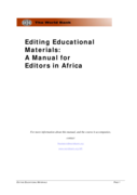 t of a CD with examples, exercises, videos, modules for face-to-face training, together with an accompanying manual for self study. This pilot on editorial skills was launched in the summer of 2007 and was trialled in five African countries: Ghana, Kenya, Uganda, Zambia, and Zimbabwe. Attractively designed and very user-friendly, the CD consists of a Course Guide: Getting Started; Module 1: Planning and Organizing Textbooks; Module 2: Language Editing; and Module 3: Copy Editing and Design, plus a manual in pdf format Editing Educational Materials: A Manual for Editors in Africa. The manual is designed to provide learners with practical guidance in the work and business of editing, whether they are currently a textbook editor, or are considering working in the field. It provides an overview of the editing processes and a basic understanding of the different roles involved, and offers guidance on the business practices involved in editing and publishing. It is divided into five major sections: (i) Book production in brief: An overview of the publication process; (ii) Organization: Time management, file management, project management; (iii) Development of a publisher's list: Identifying potential publications, working with authors in development; (iv) Communication with authors and others: Letters and contracts; and (v) Manuscript preparation: Quality control in the manuscript preparation process. A series of helpful appendices are included: sample letters – between publishers and prospective authors, publishers and ministry of education officials, correspondence with series editors, etc. – sample contracts, and a model letter of agreement." (Hans M. Zell, Publishing, Books & Reading in Sub-Saharan Africa, 3d ed. 2008, nr. 2453)