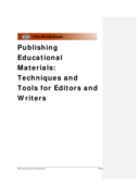 anding of the roles involved; provide guidance on the business practices involved in editing and publishing. The manual was written to accompany the course Publishing Educational Materials: Techiques and Tools for Editors and Writers, produced by the World Bank in 2008. In most cases information from the course is not repeated in the manual." (Introduction, page 5)