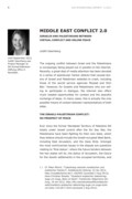 "The ongoing conflict between Israel and the Palestinians is increasingly being played out in parallel on the internet. Recently, a great deal of media attention has been devoted to a series of spectacular hacker attacks that caused dozens of Israeli and Palestinian websites to crash, including thos