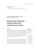 emocratization is rare, and this is even more so in the case of African countries. First, this article seeks to assess the quality of radio in Liberia, which is the country’s most popular medium. Second, the article tests a specific methodology in order to measure the contribution of radio to democracy. It argues that radio stations in Liberia strongly differ in their quality, each with specific shortcomings. These findings are confirmed by interviews with civil society representatives and by audience research." (Abstract)