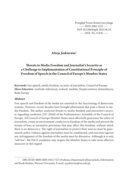 tary Assembly of the Council of Europe. All Council of Europe Member States must effectively guarantee the safety of journalists, create an environment conducive to freedom of the media and prevent the misuse of laws or normative provisions that may affect this freedom, without which there is no democracy. The right of journalists to protect their sources must be guaranteed; police violence against journalists must be condemned, and sanctions against any infringement of the freedom of the media must be dissuasive. Although it is only “softlaw”, the PACE resolution may inspire the Member States to take more effective measures in this regard." (Abstract)