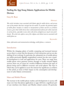 "This article introduces issues associated with Islamic apps for mobile devices, and surveys some of the products that have emerged into the market. It considers the potential impact of mobile phone interfaces in relation to interpretations of Islam and the use of Islamic resources, given that mobil