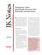 "Indigenous knowledge and local initiatives are usually documented and disseminated by outsiders, who make their own interpretations in the process. Participatory Video (PV) provides an opportunity for rural people to document their own knowledge and experiences and to express their wants and hopes
