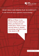 ma and an accompanying weekly discussion programme was available online and on BBC Arabic. Set in a fictional Damascus suburb, Hay el Matar followed the daily lives of residents and featured love affairs, family feuds and tragedies. Each episode was scripted by a team of Syrian writers and touched on a different issue - from violence, radicalisation and migration, to economic insecurity and forced marriage. To understand how listeners engaged with Hay El Matar, BBC Media Action commissioned and trained local non-governmental organisations (NGOs) to conduct focus group discussions with listeners in Syria and Lebanon. We found that the drama prompted listeners to think about topical issues, challenges stereotypes and have a view of the Syrian conflict that extended beyond their own personal experience. It also challenged their assumptions and prompted them to talk about and reflect on other people’s multi-faceted experiences of the conflict." (https://www.bbc.co.uk/mediaaction)