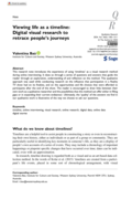 "This research note introduces the experience of using ‘timelines’ as a visual research method during online interviewing. It does so through a series of questions and answers that guide the reader through an exploration, understanding of and reflection on the method. This qualitative approach w