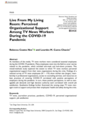 ers perceived organizational support from their news organizations during the crisis. Findings of a national survey of TV news employees (N = 173) show market size (larger), membership in professional organizations, access to counseling services, and resources on best practices of covering COVID-19 correlated with positive perceptions of employers during the pandemic. In turn, these positive perceptions, as well as manageable job demands and high decision authority each correlated with overall job satisfaction. Qualitative findings further illustrated the varying steps TV news managers took to support and protect their employees’ health and safety during the crisis." (Abstract)