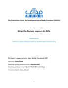 are usually targeted by sides that are afraid to be exposed while committing violations or during wars. Especially that it is almost impossible to disapprove the credibility of photos taken on field. The profession of photojournalists requires them to be on field during the events and clashes regardless of the dangerousness that might face them, and usually photojournalists are at the forefront of their colleagues; which makes them subjected to attacks and injuries. The suffering of the photojournalists in Palestine while being physically assaulted is a clear example of the risks that led some journalist to pay the price whilst they implement their profession and how they are treated when their cameras exposes the perpetrators’ rifle. The number of violations against photojournalists in West Bank and Gaza Strip from the beginning of 2012 until the first half of 2015 reached 593. The Israeli occupation committed the large number and the most dangerous (469 violations); which equals 79% of all the violations, whereas the Palestinian sides committed 124 violations in both the West Bank and Gaza Strip." (Page 4)