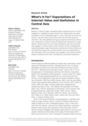 d to meet them. This article addresses that gap by exploring Central Asian Internet users’ expectations of Internet utility and relating those expectations to usage patterns. We found that the users whose expectations were met were those who engaged in a diverse range of online activities. We also investigated the relationship between usage characteristics and diversity of online activities and concluded that frequent and occasional Internet users were equally likely to seek information online, but frequent users engaged in more diverse activities related to interaction with others, entertainment, and financial transactions." (Abstract)