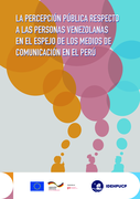 de comunicación, ya que la delincuencia es el tema principal con el que se los asocia: el 70% (televisión) y el 80% (diarios populares) de todas las notas que se referían a venezolanos y venezolanas trataban de temas policiales y de crimen. En estas notas, los ciudadanos venezolanos cumplían el rol de victimario en un 65% y en un 15%, el de infractor de la ley. Esto significa que en cuatro de cinco notas o reportajes en las que un lector o televidente en el Perú lee o escucha de una persona venezolana, es porque se la relaciona con un tema de delincuencia, muchas veces violenta. Esto genera en el lector o televidente la impresión de que la migración y las personas migrantes están asociadas con un supuesto incremento de la inseguridad ciudadana. Así el 86,3% de los encuestados opinó que la migración venezolana había contribuido a la inseguridad ciudadana en el Perú. La asociación de la persona migrante con la delincuencia produce, además, distancia, temor o hasta rechazo para con los migrantes. Por su parte, en las personas venezolanas genera un estigma que les dificulta la inserción en la sociedad." (Conclusiones, página 97)