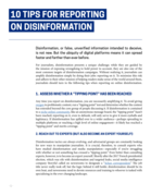 heir jobs: reporting on it. To minimize this risk and adhere to their other mission of helping readers make sense of the world around them, journalists should turn to the following tips when reporting on online disinformation." (Page 1)