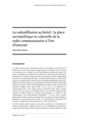 . Cet article, inspiré de notre recherche doctorale, éclairé par une approche théorique inspirée d’Antonio Gramsci, souhaite interroger la pertinence et quelques problématiques de la radio communautaire au Brésil à travers la présentation de deux exemples de stations situées dans des favelas et des témoignages d’acteurs." (Résumé)