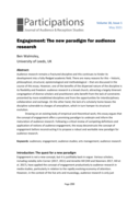 one of the benefits of the dispersed nature of the discipline is its flexibility and freedom: audience research is a broad church, attracting a largely itinerant congregation of diverse scholars and practitioners who benefit from the lack of constraints presented by more established disciplines and from the opportunities for interdisciplinary collaboration and exchange. On the other hand, the lack of a scholarly home leaves the discipline vulnerable to charges of amorphism, which in turn hamper its structural evolution. Drawing on an existing body of empirical and theoretical work, this essay argues that the concept of engagement offers a promising paradigm to underpin and inform the maturation of audience research. Following a critical review of competing definitions and application of notions of audience engagement, the essay deconstructs the concept of engagement before reconstructing it to propose a robust and workable new paradigm for audience research." (Abstract)