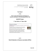 science journalists in the developing world. In 2009, at the end of SjCOOP, networks of science journalists are now in place in Africa and in the Arab World. Each network is made of one regional association complemented by national associations. The African network includes nine national associations (6 created by SjCOOP) with a total membership of 408 journalists. The Arab network is mainly represented by a pan-Arab association with two national associations (created through SjCOOP) representing some 215 journalists. [...] Twelve associations from the developing world are now official members of the World Federation of Science Journalists and eight are twinned with associations in Asia, Europe and North America. This new global network in science journalism creates an incentive for better reporting and increased recognition of science journalists in the developing world." (Executive summary, page 6)