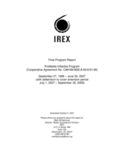 "This evaluation of USAID’s Kosovo Media Assistance Project (KMAP) took place close to the end of the three-year project, and addressed two main issues: (1) what has been the impact of KMAP? and (2) based on findings related to KMAP, what recommendations can be made to guide possible future USAID