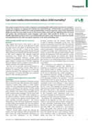 "Through a systematic review of the literature, this article summarizes and evaluates evidence for the effectiveness of mass media interventions for child survival. To be included, studies had to describe a mass media intervention; address a child survival health topic; present quantitative data fro