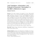 "This article examines the depiction of three impoverished Lagosian slums in the controversial British Broadcasting Corporation (BBC) documentary, Welcome to Lagos, which highlights the negative impacts of globalised capitalism on urban culture in Nigeria’s commercial centre and biggest city. In r