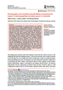 nities. It identifies four ways that everyday peace indicator photovoice projects in Colombia bolstered community peace: by engendering healing, building territorial identity, enabling intergenerational dialogue, and catalysing action. These impacts emerged as photovoice built on enabling factors, extending existing community peacebuilding capacities, concerns and interventions. Reflecting on the constraints and tensions around working with photography in security-sensitive environments, we propose that participatory photography makes up a vital component of the peace photography genre. We argue that the careful, strategic harnessing of photovoice, and the visualisation of everyday peace, creates opportunities for raising the voices of conflict-affected communities, building shared imaginaries and nurturing dialogue, healing and action." (Abstract)