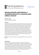 the community. Building on critical ethnographic audience research, I argue for a storytelling approach that facilitates personal narratives and cooperative focus groups among community radio audiences." (Summary)