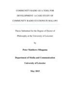 "The thesis investigates community radio as a tool for development drawing on case studies of Nkhotakota and Mzimba community radio stations in Malawi. The thesis employs communication for development and ‘another’ development theories to help understand the role of community radio in developmen