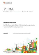 "This working paper considers in detail how the hosts of and listeners to one call-in radio programme in Zambia were influenced by, resisted and co-opted the agendas of the sponsor that paid for its production. It develops a detailed case-study covering fifteen episodes of, ‘Let’s Be Responsible